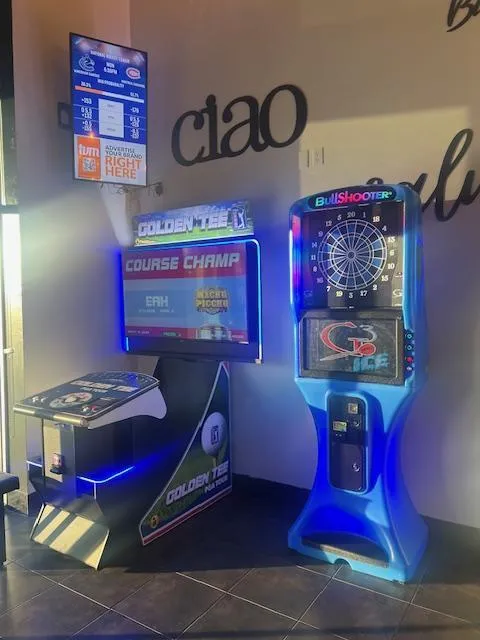 Great onion rings real beer batter, great pizza/pasta great atmosphere really nice bar seating. Part sports bar, part Italian restaurant, part favorite hangout spot. Perfect "locals watering hole" vibe. Even has a few slots for you gamblin folks.